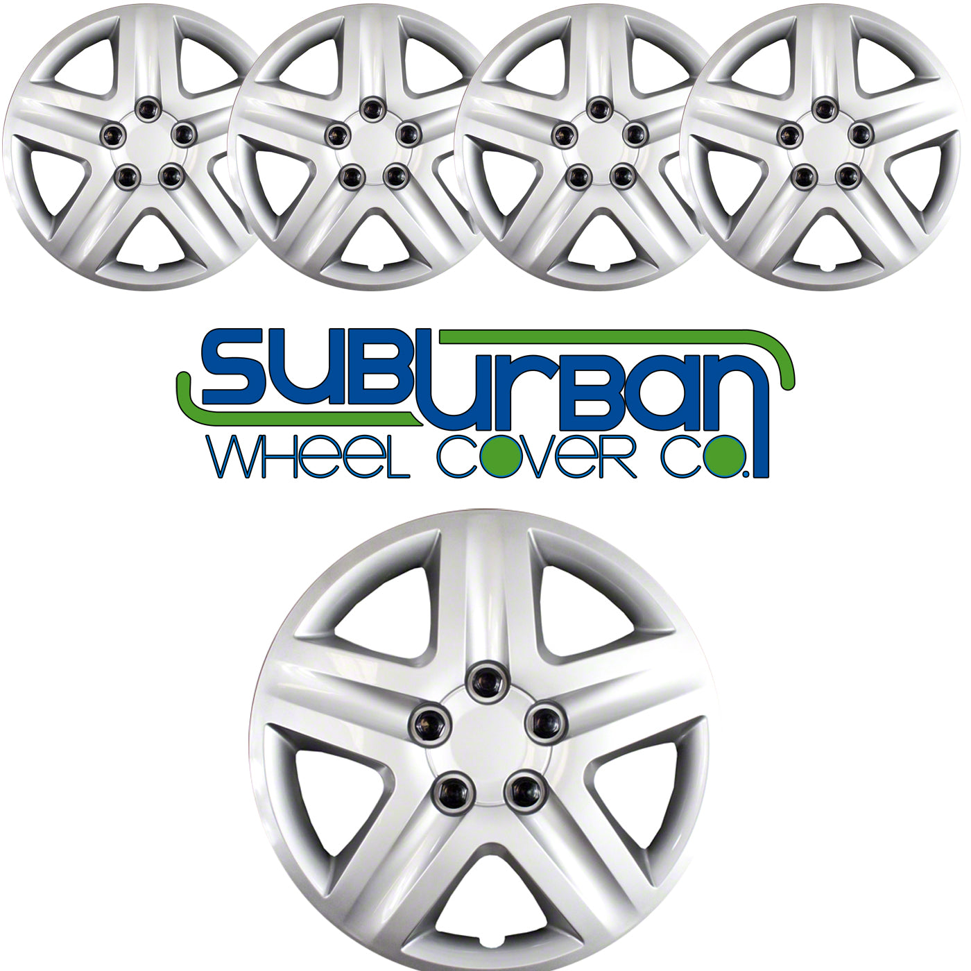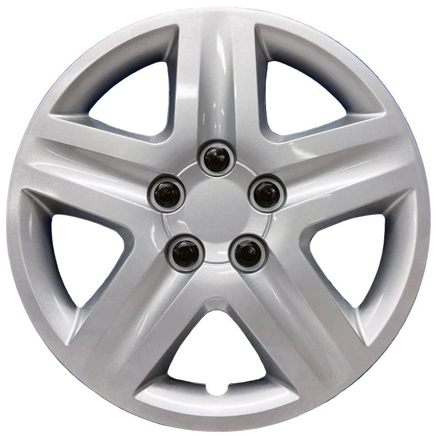 Here is a great looking 5 spoke replacement hubcap for most vehicles with 17" tires. These hubcaps have metal clips for a perfect fit. These 16 inch wheel covers have a silver metallic painted finish.
