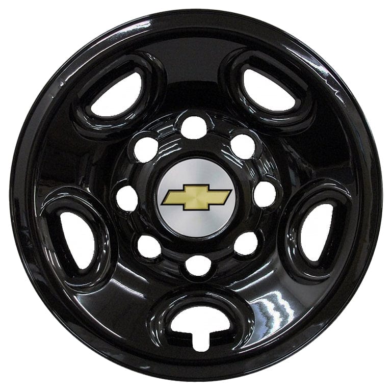 This 16" gloss black wheel skin fits 2001-2007 Chevrolet Silverado 1500 models with the matching 5 spoke 8 lug styled steel wheel only. They are simple to install and instantly give the appearance of a real black wheel. They are made out of durable gloss black painted plastic.