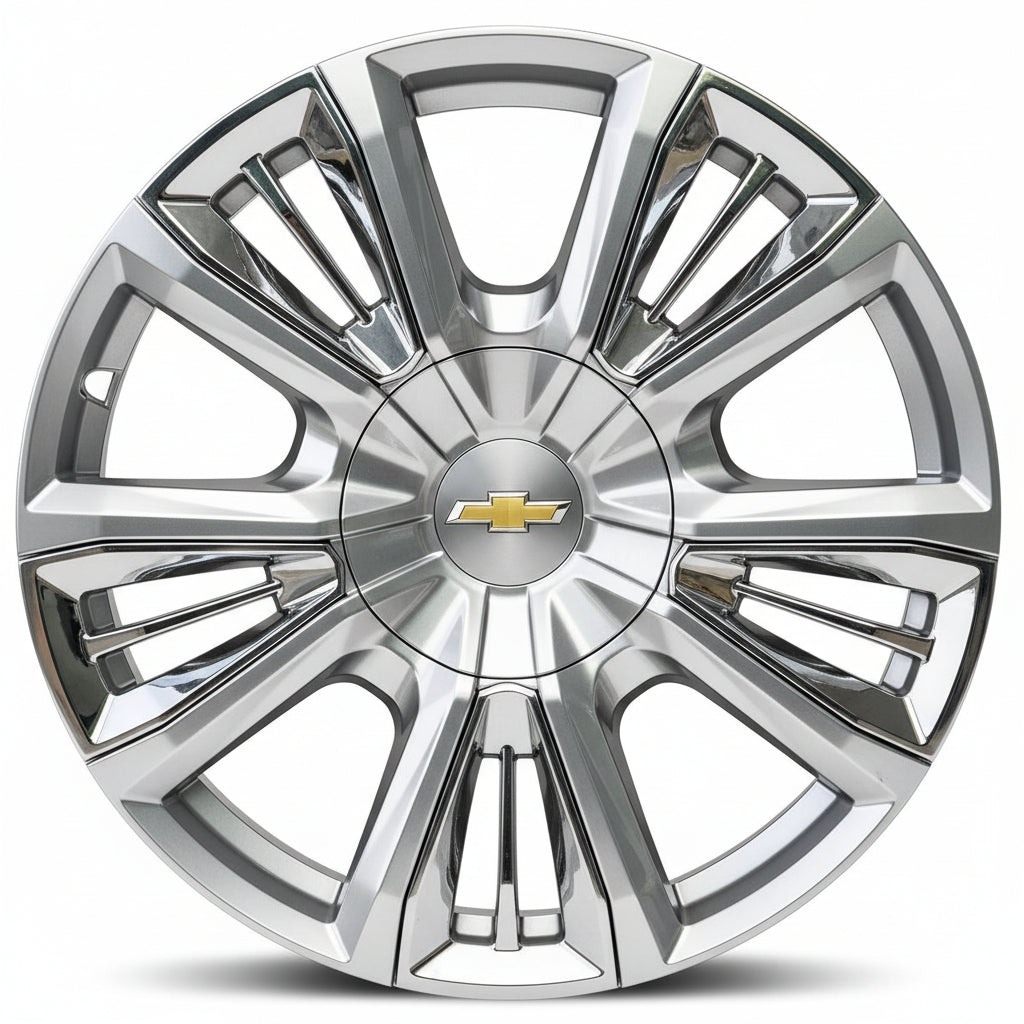 This center cap fits 2021-2023 Chevrolet Suburban High Country models with the optional 22" 10 spoke aluminum wheel with chrome inserts only (see wheel photo).