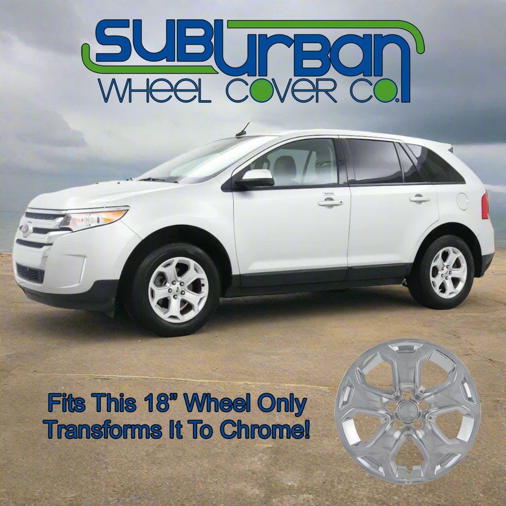This 18" chrome wheel skin fits 2011-2014 Ford Edge SE and SEL models with the matching 5 spoke aluminum wheel only (see vehicle photo). They are simple to install and instantly give the appearance of a real chrome wheel. They are made out of durable chrome plated plastic.
