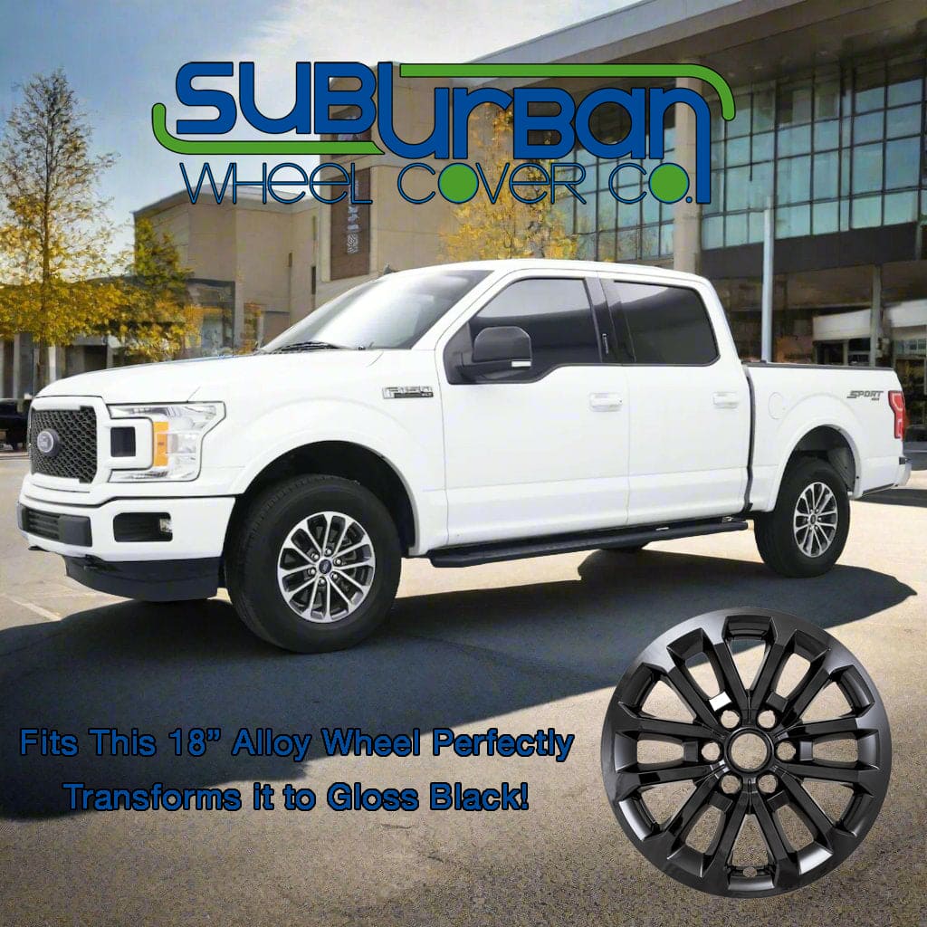 This 18" gloss black wheel skin fits some 2018-2020 Ford F150 XLT models with the matching aluminum wheels only (see vehicle photo). They are simple to install and instantly give the appearance of a real black wheel. They are made out of durable gloss black painted plastic.
