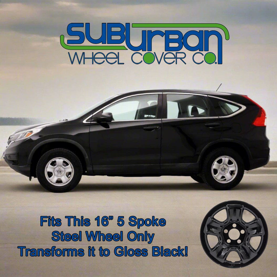This premium grade 16" gloss black wheel skin fits the 2012-2016 Honda CR-V LX with the matching 5 spoke steel wheel only (see vehicle photo's). They are simple to install and instantly give the appearance of a real black wheel. They are made out of durable gloss black painted plastic. These wheel skins install directly over the top of your steel wheel and center cap. Your center caps and lug nuts will show through the openings on the wheel skin.