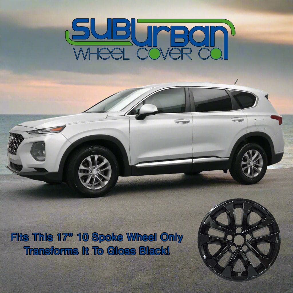 This premium 17" gloss black wheel skin fits 2019-2020 Hyundai Santa Fe SE models with the matching 10 spoke aluminum wheel only (see vehicle photo). They are simple to install and instantly give the appearance of a real black wheel. They are made out of durable gloss black painted plastic.