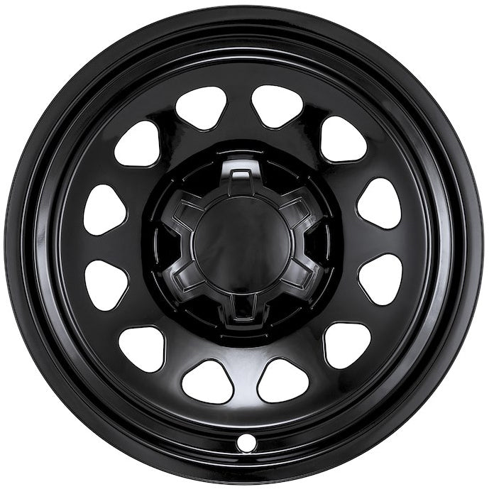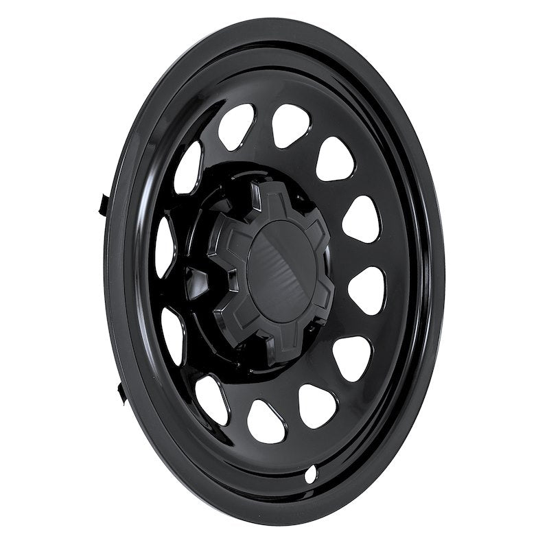 This 17" gloss black wheel skin fits 2023-2025 Chevrolet Colorado WT models with the matching 12 slot styled steel wheel only. They are simple to install and instantly give the appearance of a real black wheel. They are made out of durable gloss black painted plastic. Simply install directly over your existing center caps which will allow the Chevrolet logo to be visible through the opening. This gives the finished product a factory appearance.