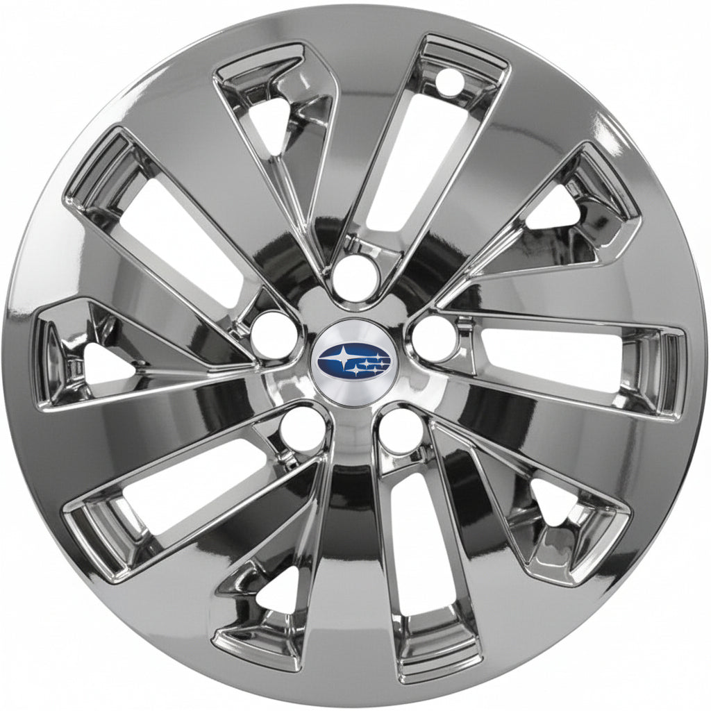 This 17" chrome wheel skin fits 2020-2025 Subaru Outback Premium model vehicles with the matching 10 spoke aluminum wheels only (see vehicle photo). They are simple to install and instantly give the appearance of a real chrome wheel. They are made out of durable triple chrome plated plastic.
