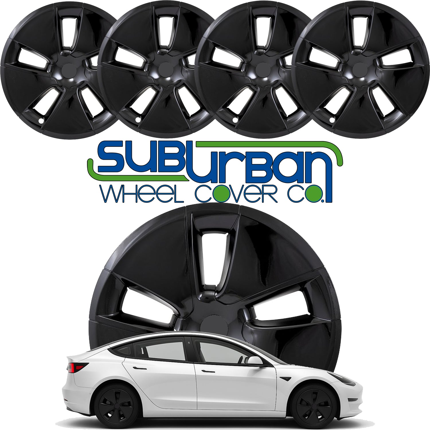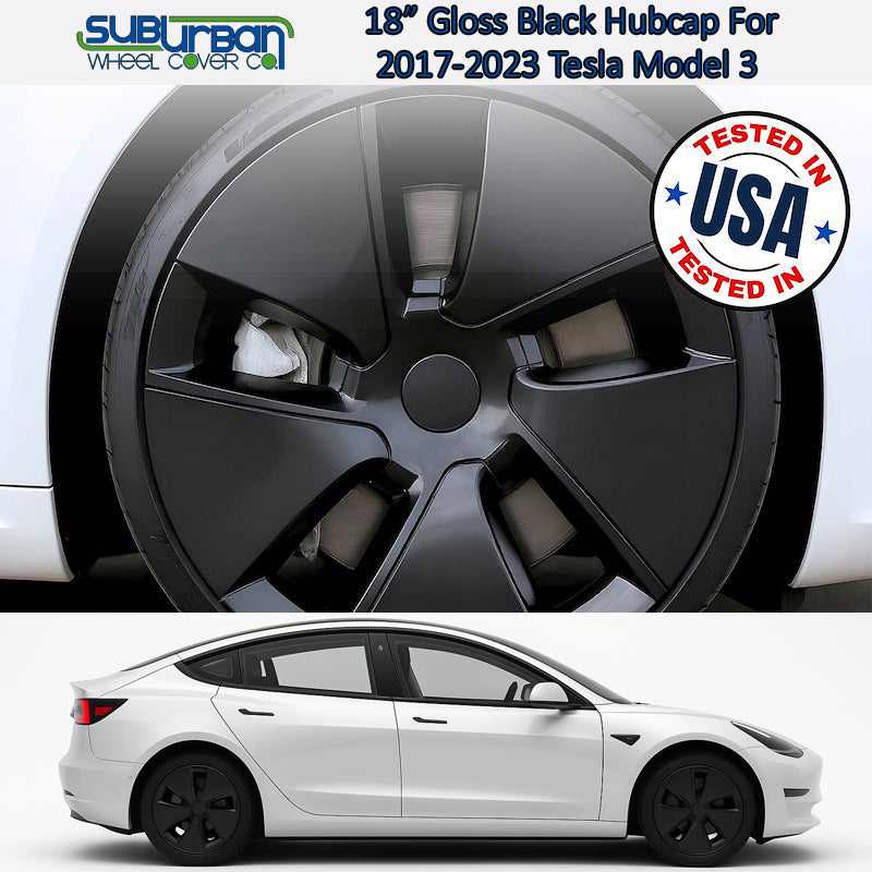 - '17-23 Tesla Model 3 18" Gloss Black Replacement Hubcaps 565-18BLK