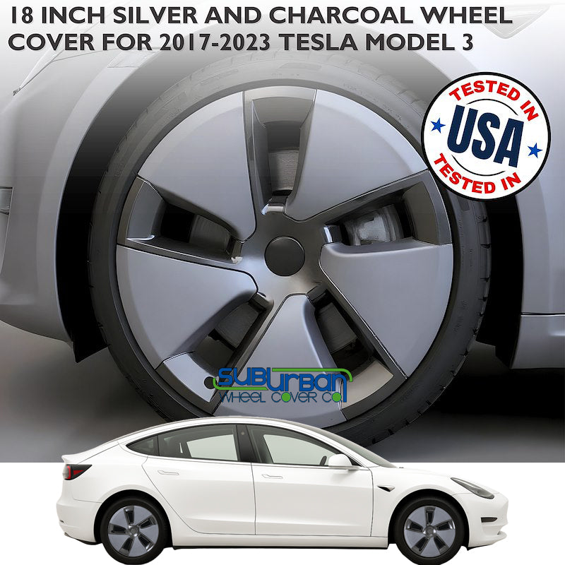 - '17-23 Tesla Model 3 18" Two Tone Replacement Hubcaps 565-18SC