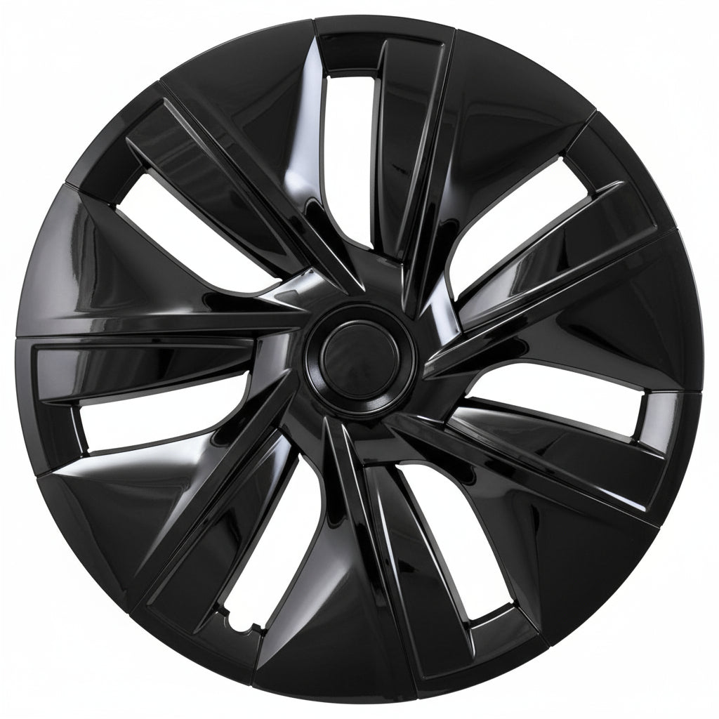 Here is a great looking set of 4 19" gloss black replacement hubcaps for 2020-2024 Tesla Model Y vehicles. These hubcaps fit perfect. The quality is comparable to original Tesla hubcaps. They are manufactured to OEM specs in Taiwan.