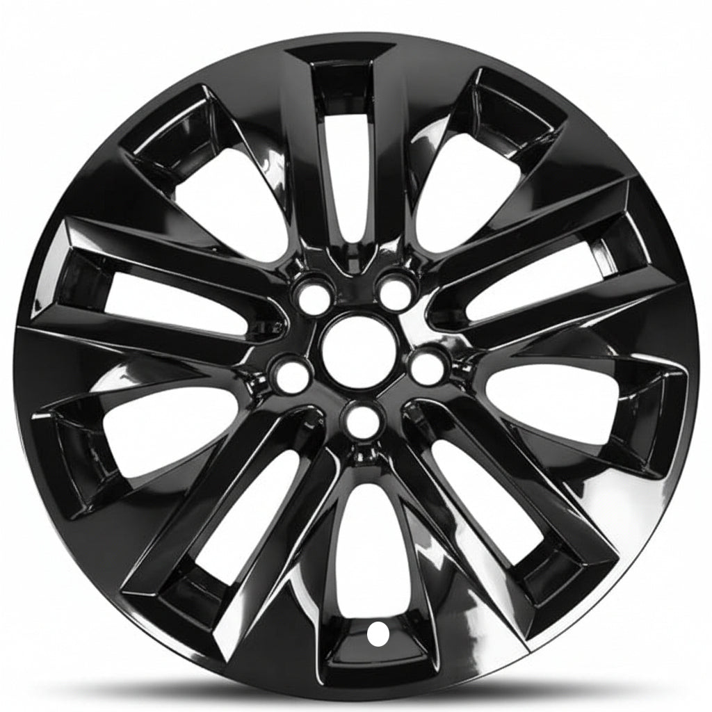This 19" gloss black wheel skin fits 2019-2025 Toyota RAV4 models with the matching 10 spoke aluminum wheel only (see vehicle photo). They are simple to install and instantly give the appearance of a real black wheel. They are made out of durable gloss black painted plastic.
