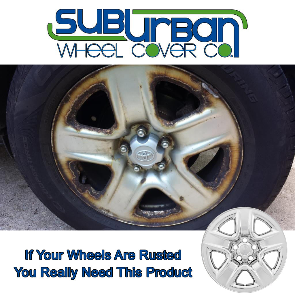 This premium 17" chrome wheel skin fits 2006-2012 Toyota RAV4 models with the matching 5 spoke steel wheel only (see vehicle photo). They are simple to install and instantly give the appearance of a real chrome wheel. They are made out of durable chrome plated plastic.