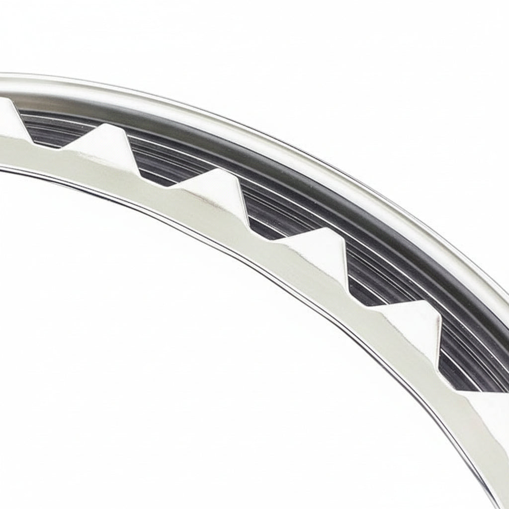 These high quality triple chrome plated stainless steel 15" ribbed trim rings will significantly improve the appearance of vintage rally type steel wheels. They feature full 360 degree steel retention clips resulting in a perfect fit on most applications. They have an approximate depth of 1 3/8".
