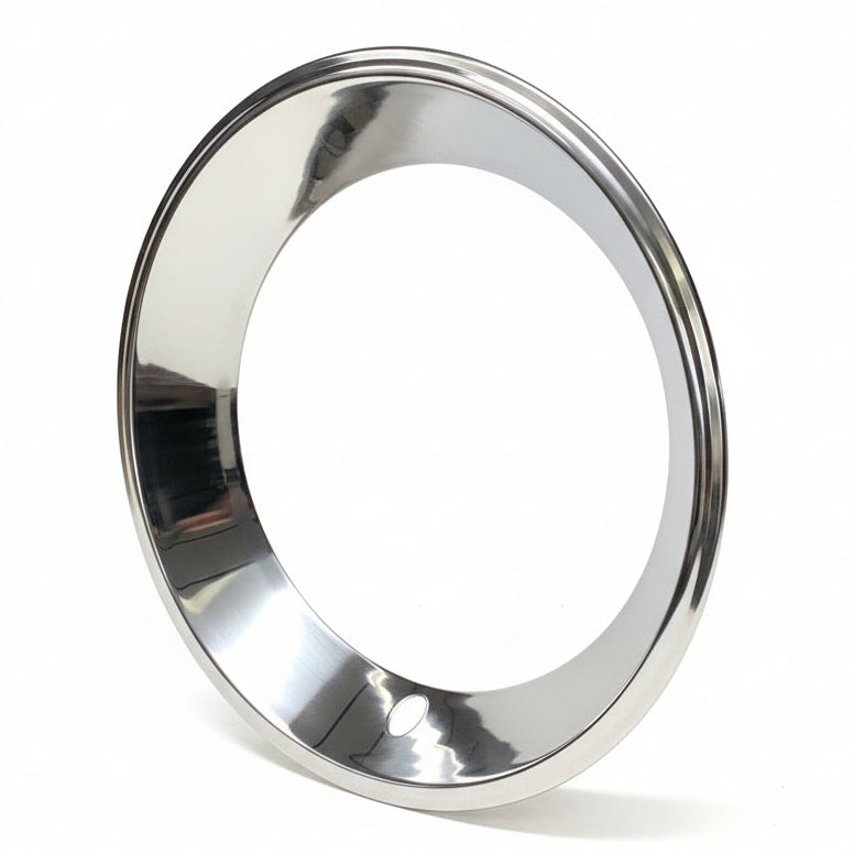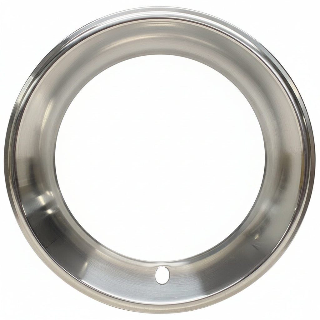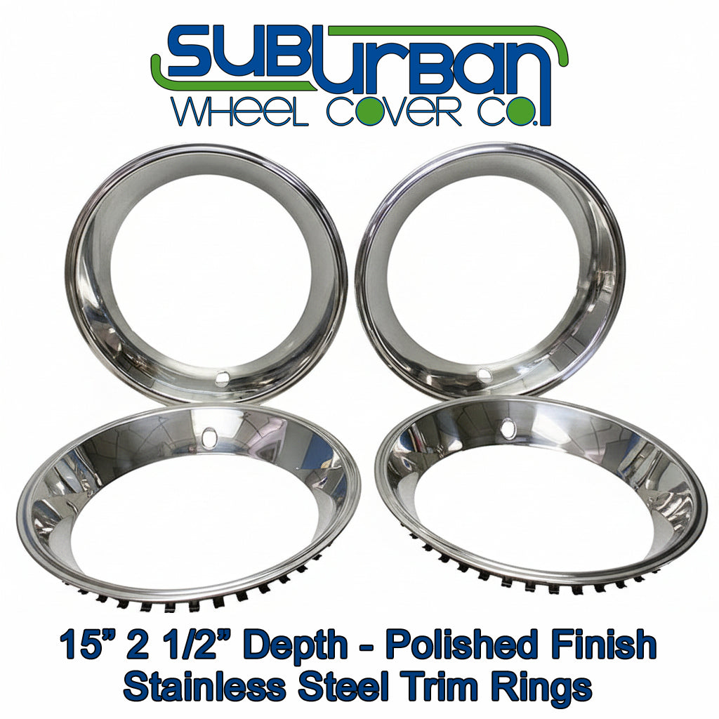 These high quality deep dish high stainless steel trim rings will improve the appearance of wider rally type wheels. They have an approximate depth of 2 1/2". Full 360 degree steel retention clips are used for a great fit.