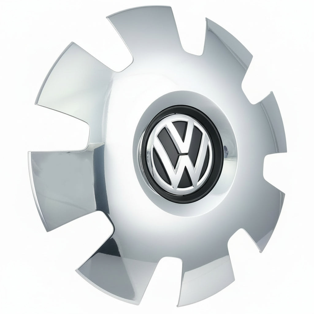 This chrome center cap fits 2012-2017 Volkswagen Beetle models with 18" 8 spoke aluminum wheels (see car photo). The VW part number is 5C0-601149-CQZQ.