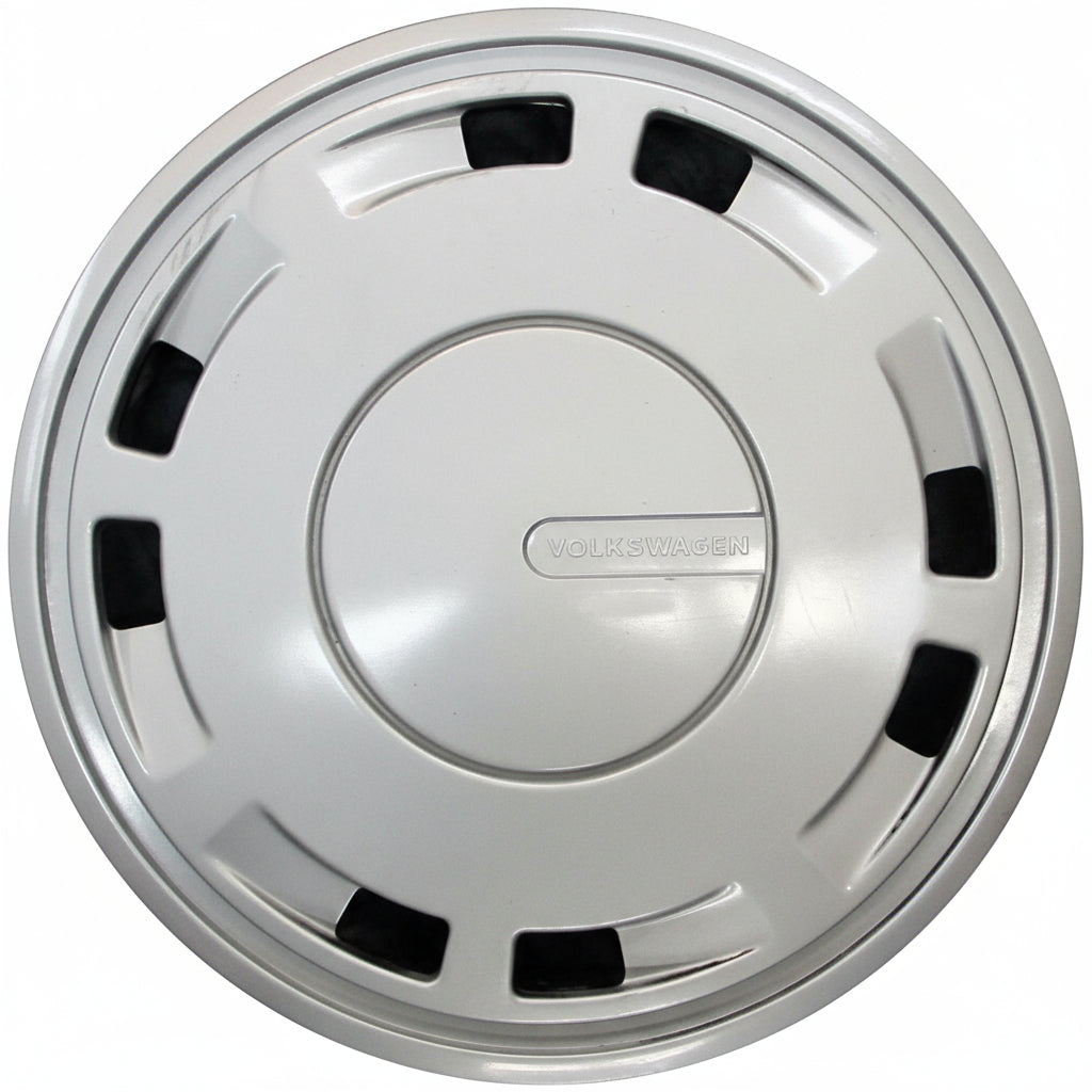 This 13" 8 slot hubcap / wheel cover fits 1987-1990 Volkswagen Fox base model cars. The VW part number for this hubcap is 3056011551162.