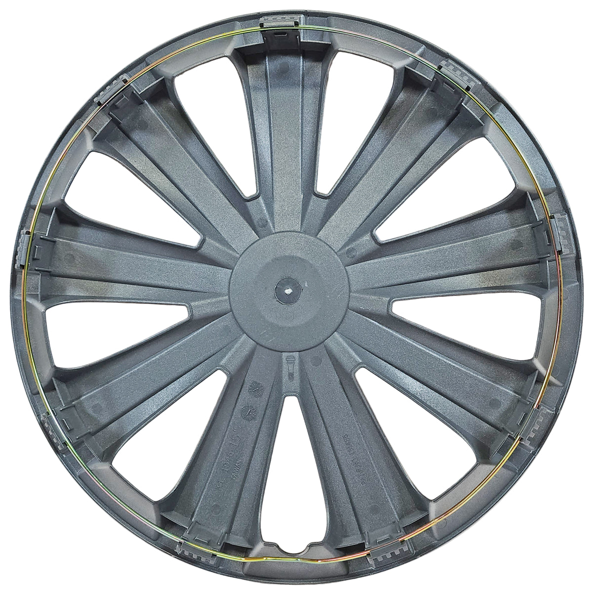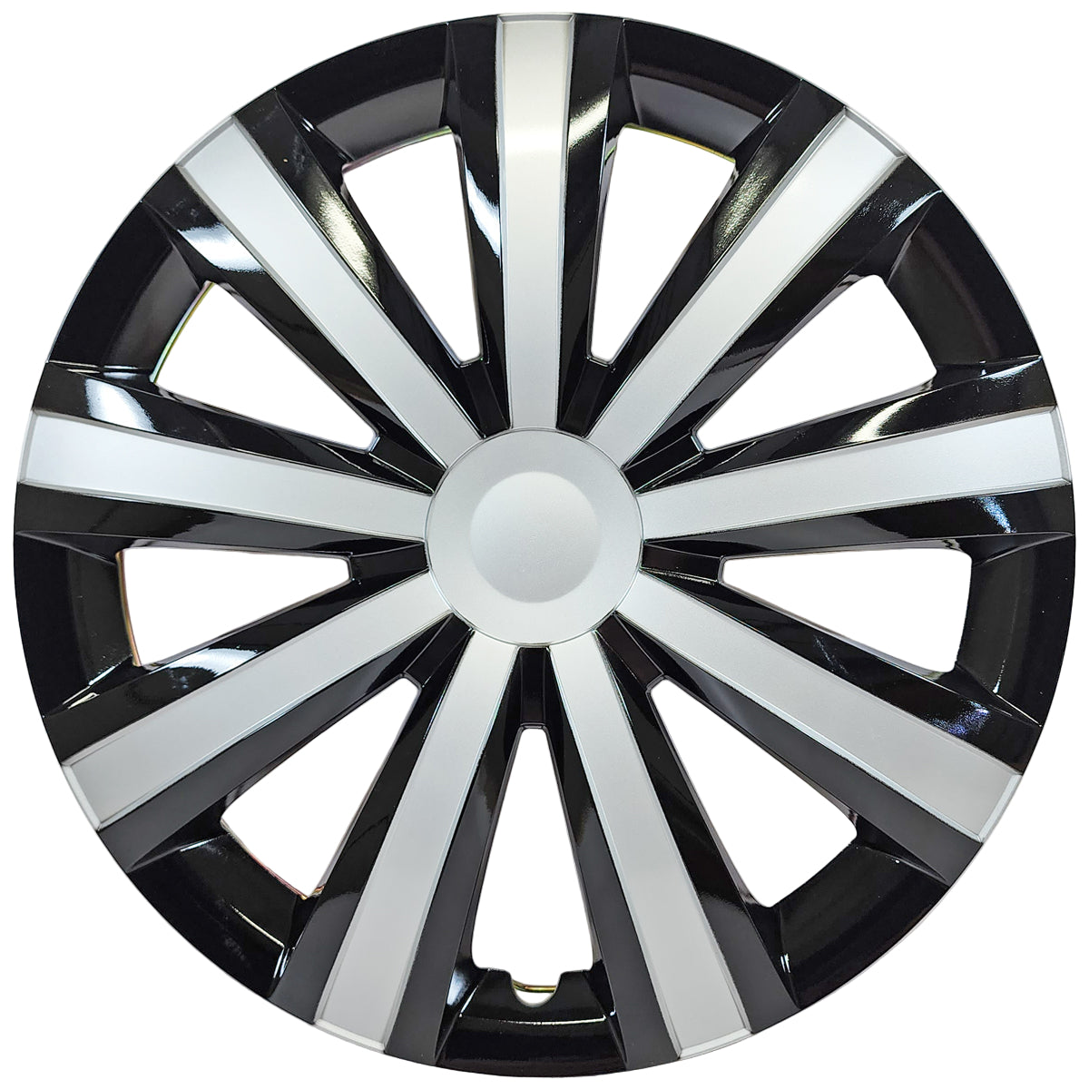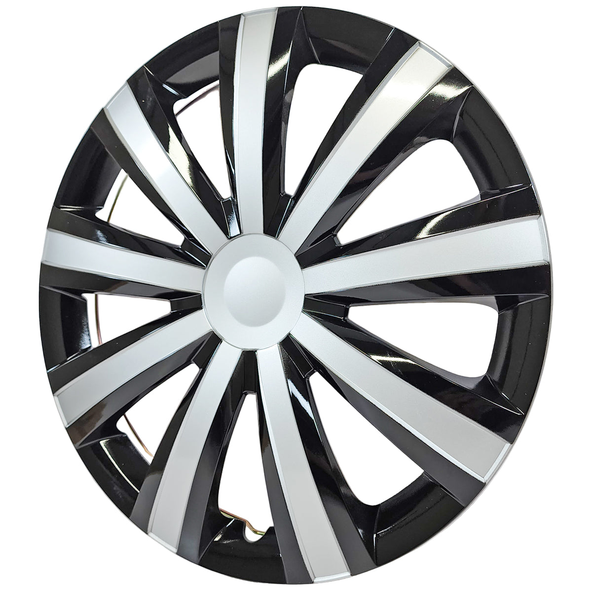 Here is a great looking low cost 15" two tone silver / gloss black replacement hubcap for most Volkswagen cars and other vehicles with 15" tires. These hubcaps have a metal ring / plastic clip retention system for a perfect fit.